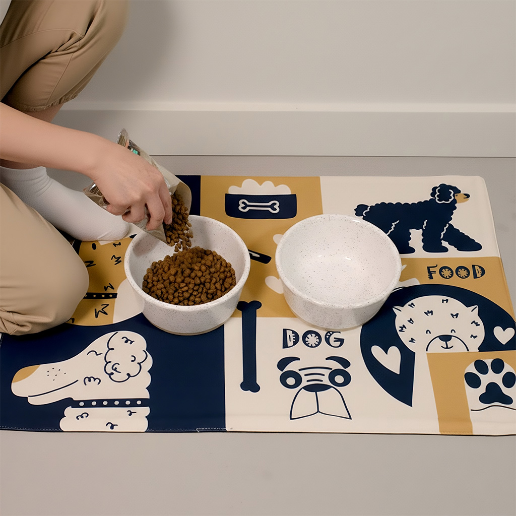 Uma nova versão do nosso Tapete Comedouro Mahuna. Não molha e suja o piso, evita de ir formigas na comida e não escorrega de jeito nenhum no chão.