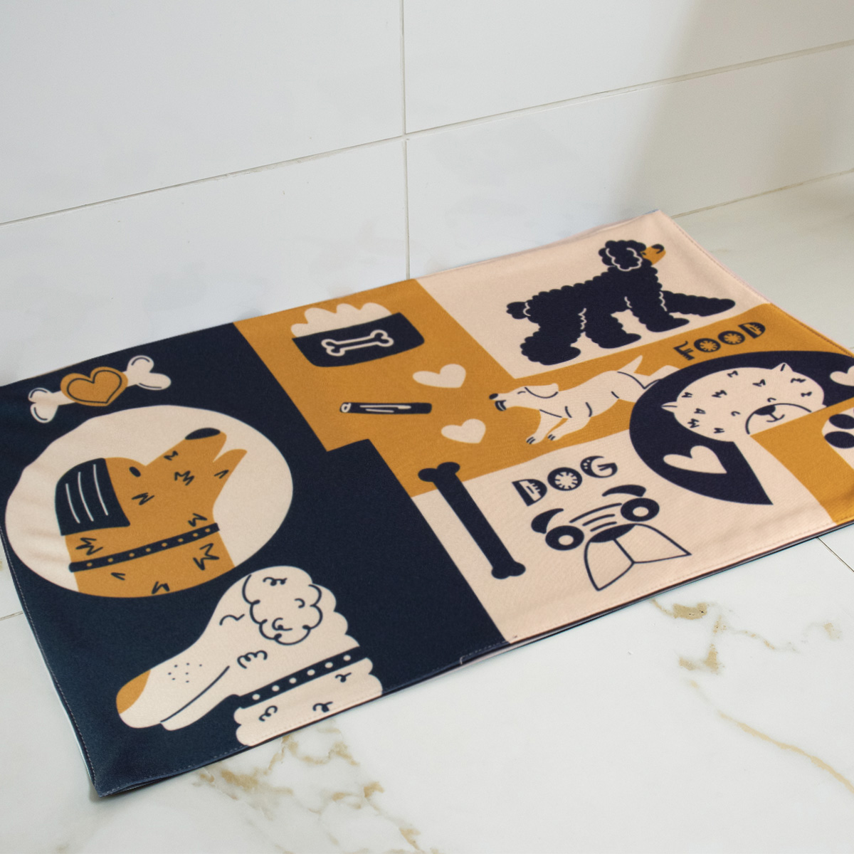 Uma nova versão do nosso Tapete Comedouro Mahuna. Não molha e suja o piso, evita de ir formigas na comida e não escorrega de jeito nenhum no chão.